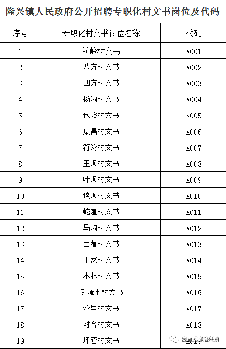 附:隆兴镇人民政府公开招聘专职化村文书岗位及代码