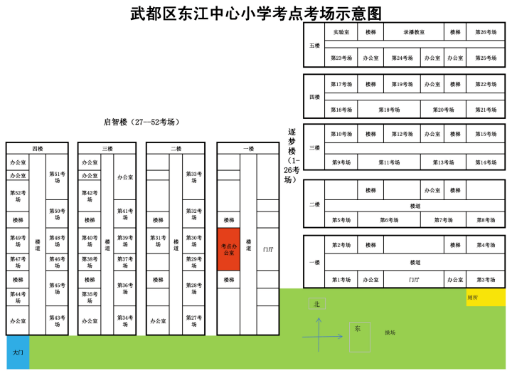 5.武都区东江中心小学(三支一扶考点),地址:武都区东江镇朝阳社区阶州大道66号( 校门入口:武都区江北小学大门西侧巷道内)。
