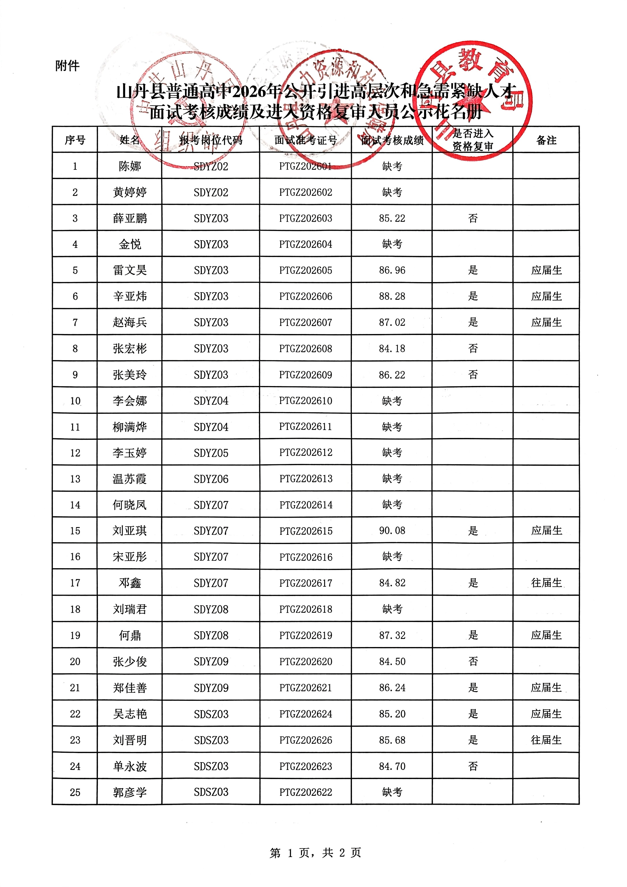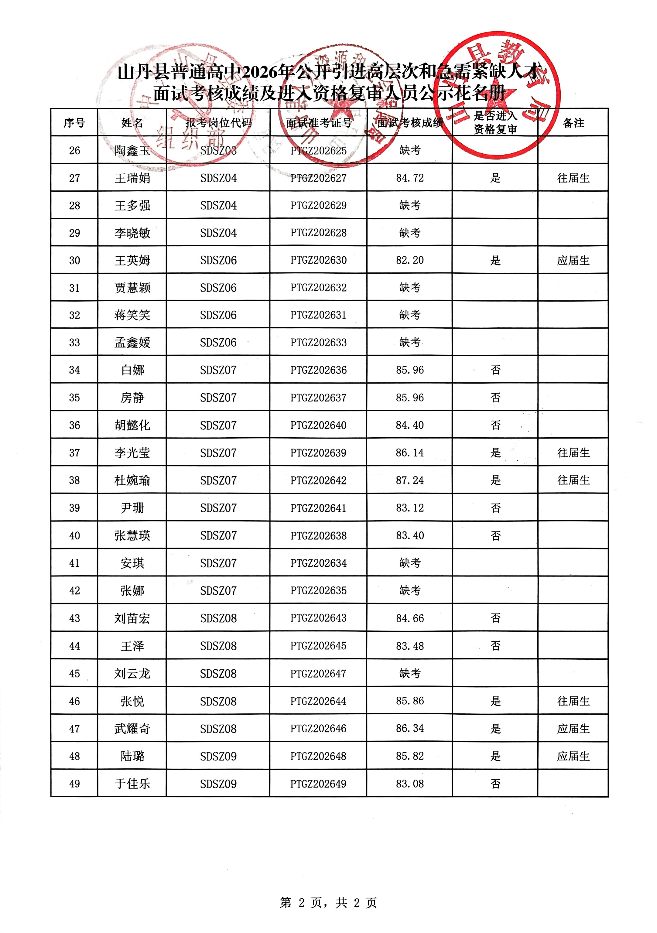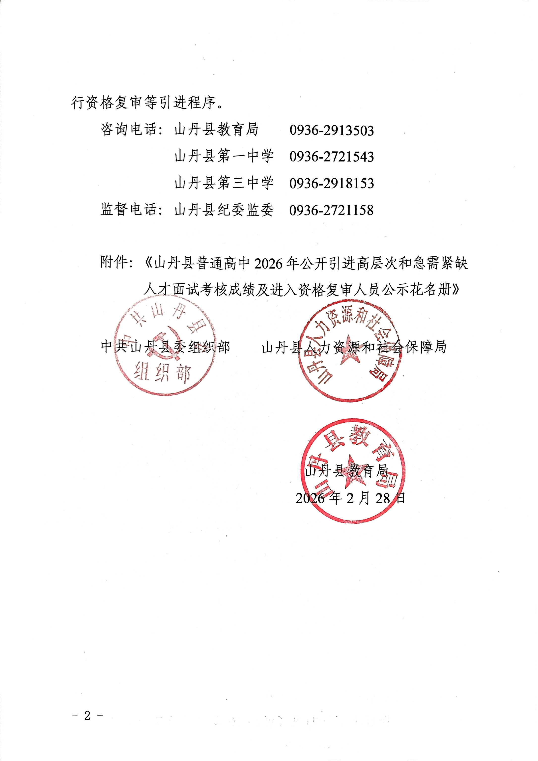 原文标题:关于取消山丹县普通高中2026年公开引进高层次和急需紧缺人才部分岗位计划及公布面试考核成绩、进入资格复审人员的公告